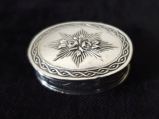 Antique French 800 Silver Oval Pill Box by Henin & Cie with Floral Motif