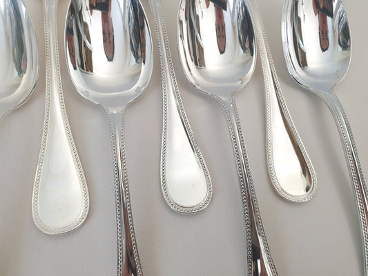 10 Christofle Silver Plated Table Spoons 'Pearls' Model - French Christofle Soup Spoons