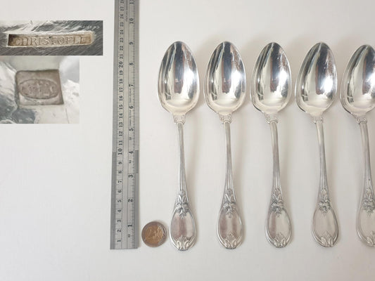 6 Christofle Silver Plated Table Spoons 'Trianon' Model - French Christofle Soup Spoons