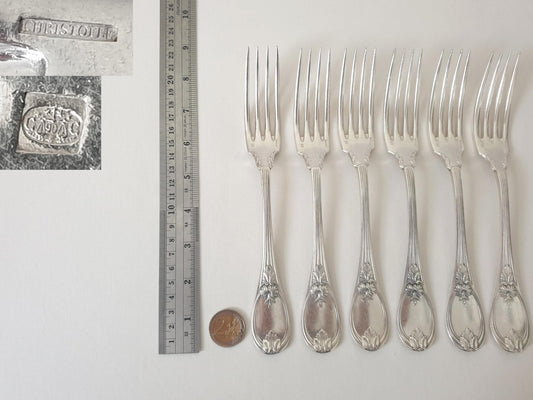 6 Christofle Silver Plated Table Forks 'Trianon' Model - French Christofle Dinner Forks