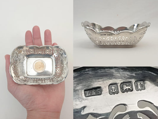 Antique English 925 Sterling Silver Pierced Small Dish - Birmingham 1916 by Levi & Salaman - Silver Ring Dish or Bon Bon Dish - Nut dish