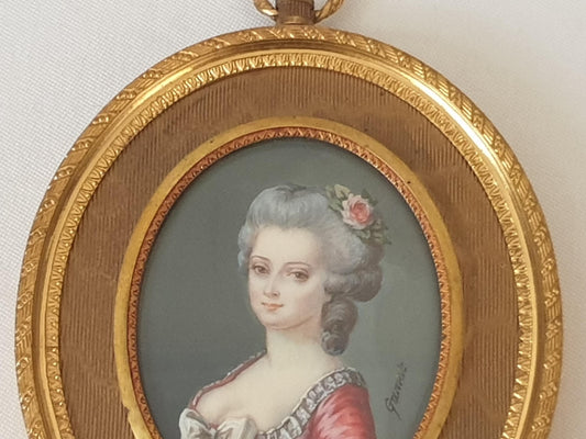 Antique 19th Century Hand Painted French School Miniature Portrait of a Beautiful Lady, Signed GAMET, in Gilded Bronze Medallion Frame