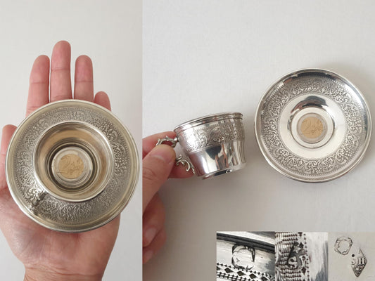 Antique French 950 Silver Espresso Cup and Saucer - Small Demitasse Silver Cup and Saucer