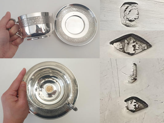 Antique French 950 Silver Coffee or Chocolate Cup and Saucer - Solid Silver Tea Cup and Saucer Set