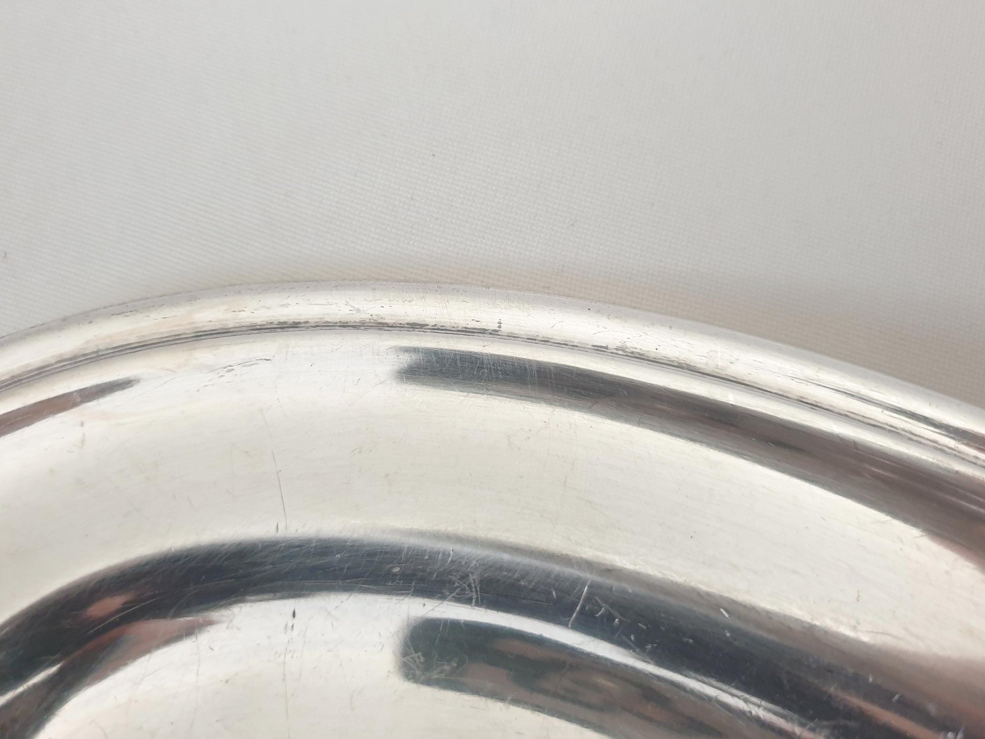 A small French oval serving dish in silver plate by Ercuis, one of France’s most renowned silversmiths. The dish features a simple, elegant form with a smooth rim, making it versatile for serving or display. Stamped Ercuis with reference numbers on the reverse. An elegant piece of French silver plate, perfect as a serving tray, table accessory, or collector’s item. *Please check the size carefully.