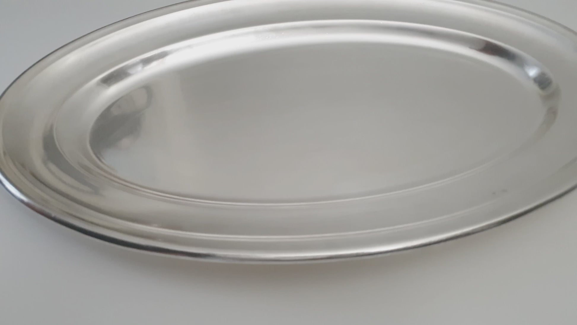 French Large Silver Plated Oval Serving – Large Vintage Oval Silver Plated Platter in Minimalist Style