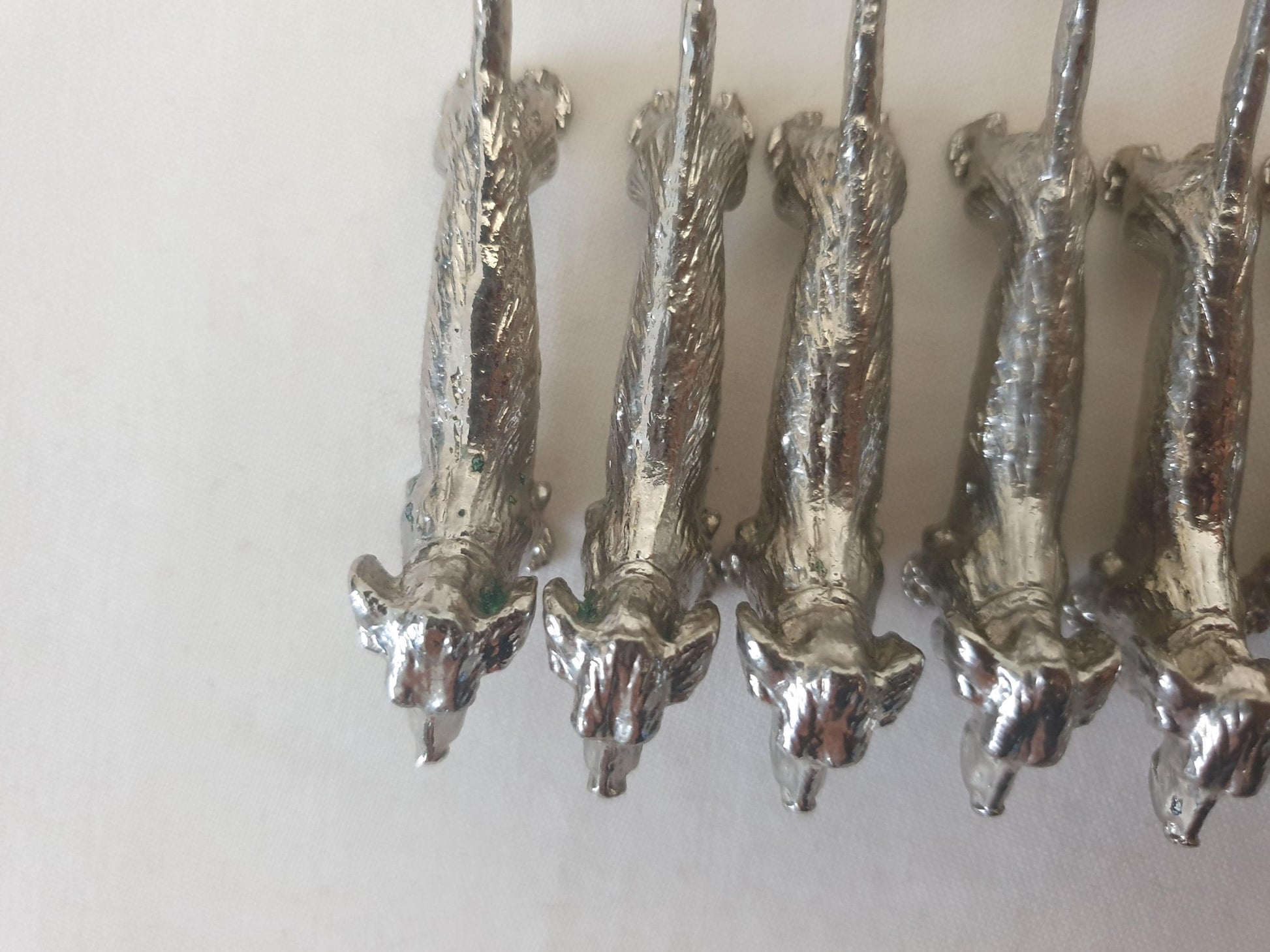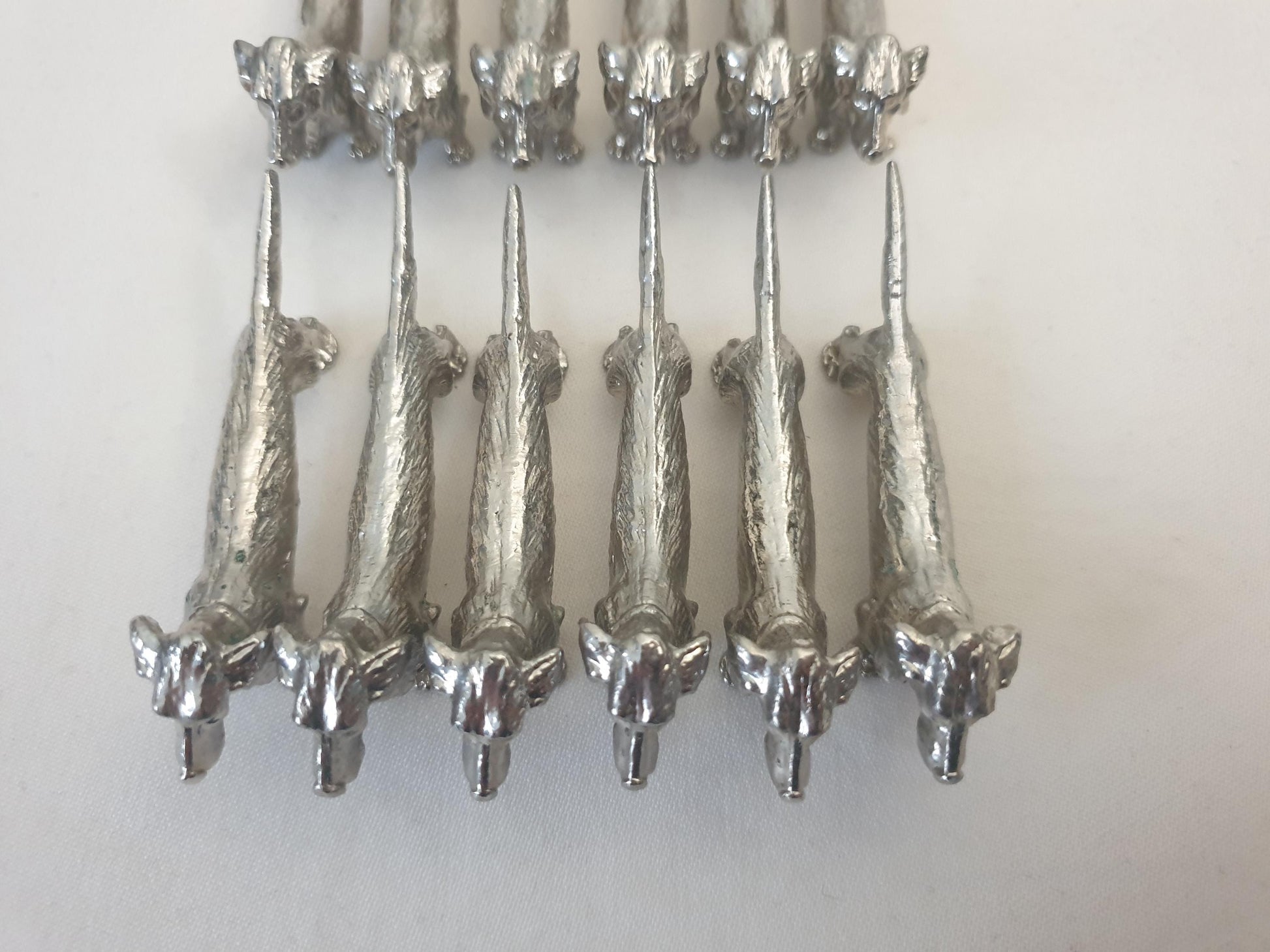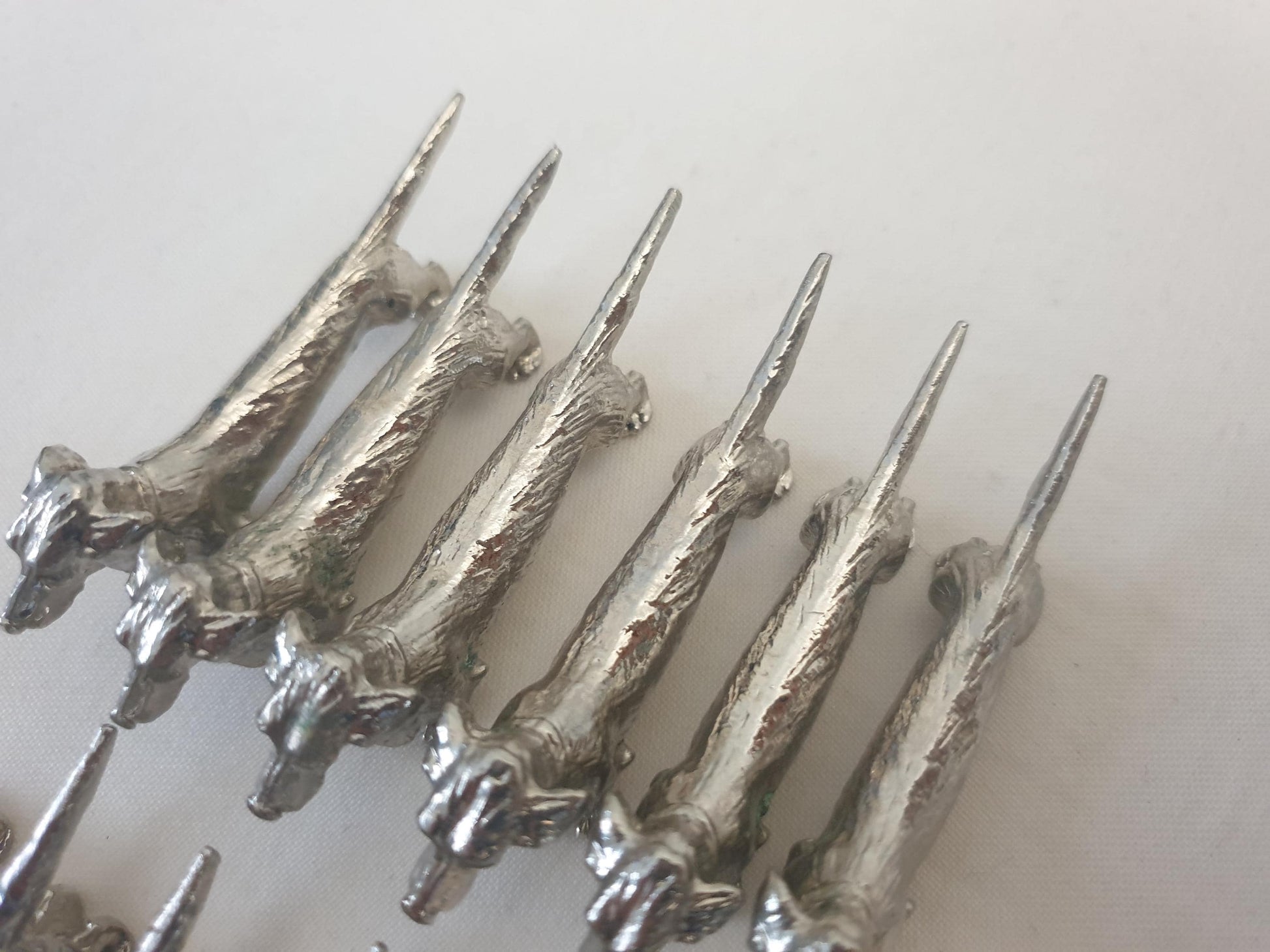 Set of 12 Vintage Silver Plated Dachshund (Teckel) Knife Rests in Blue Box