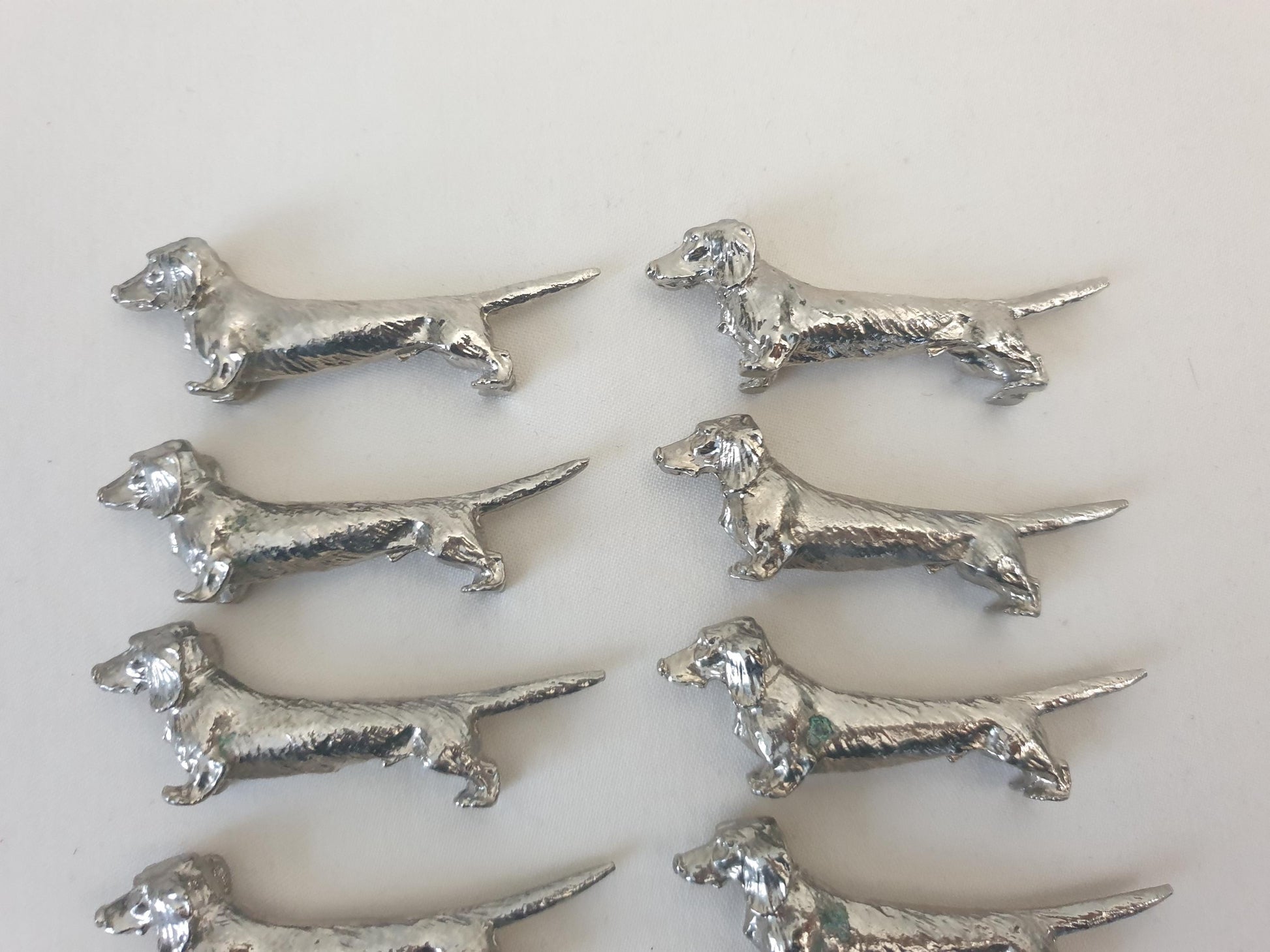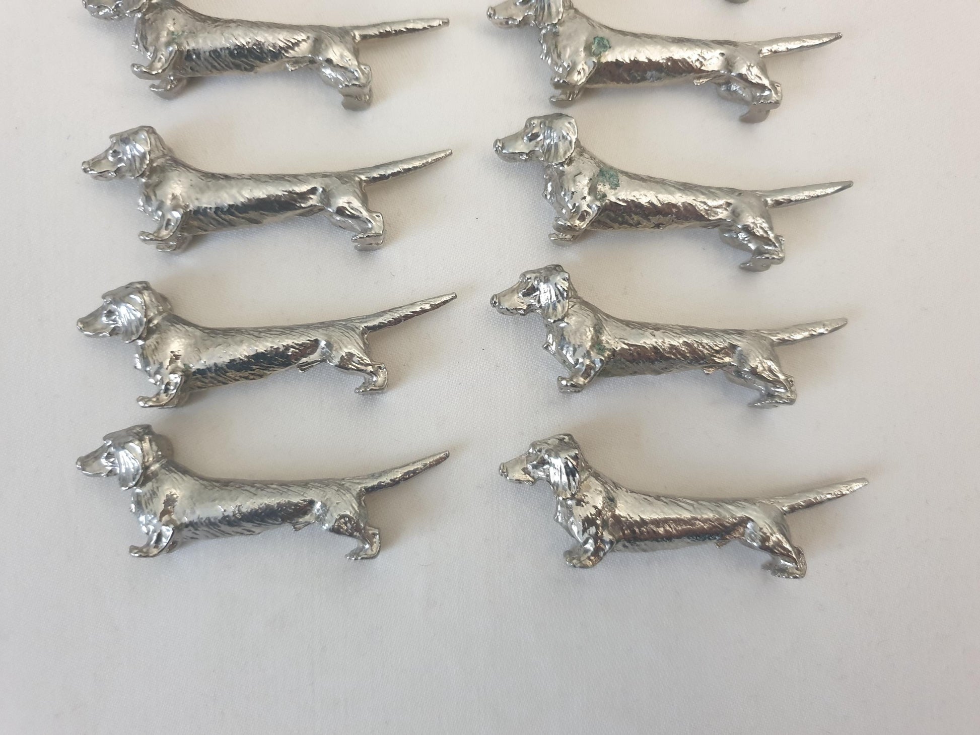 Add timeless charm and whimsy to your dining table with this elegant set of 12 vintage silver-plated knife rests shaped as dachshunds (teckels). Dating from the 1960s, each piece is beautifully detailed, showcasing the playful form of the beloved breed.